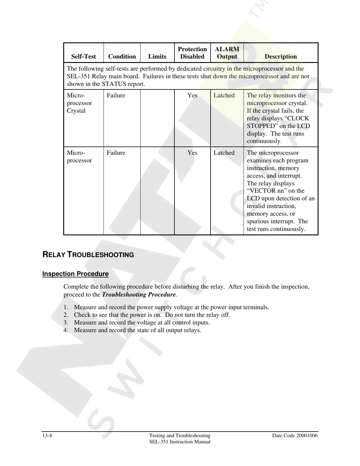 SEL-351 Relay main board. Failures in these tests shut down the microprocessor and are not