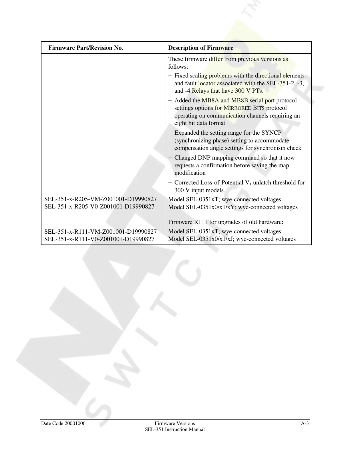 Model SEL-0351x0/x1/xJ; wye-connected voltages