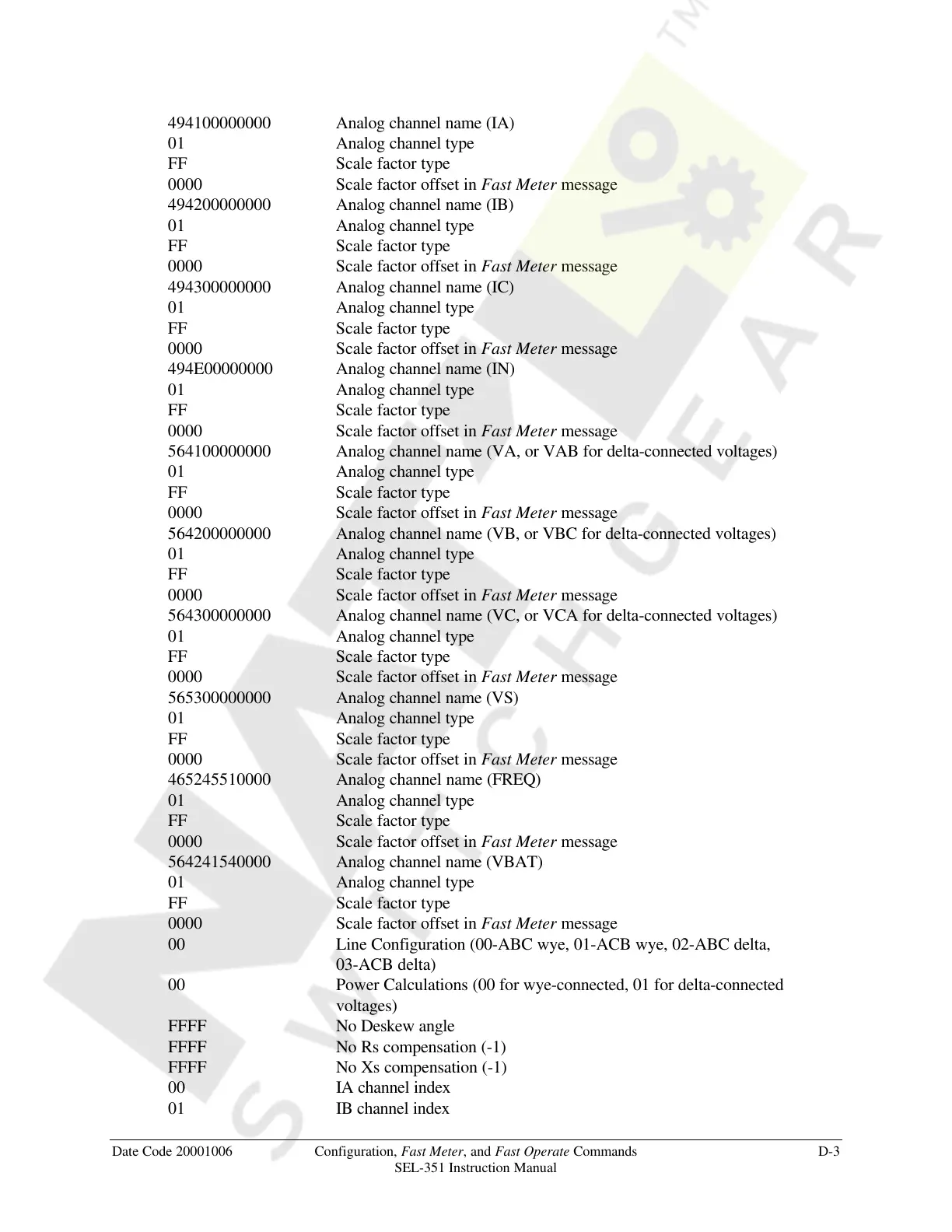 Date Code 20001006 Configuration, Fast Meter, and Fast Operate Commands D-3