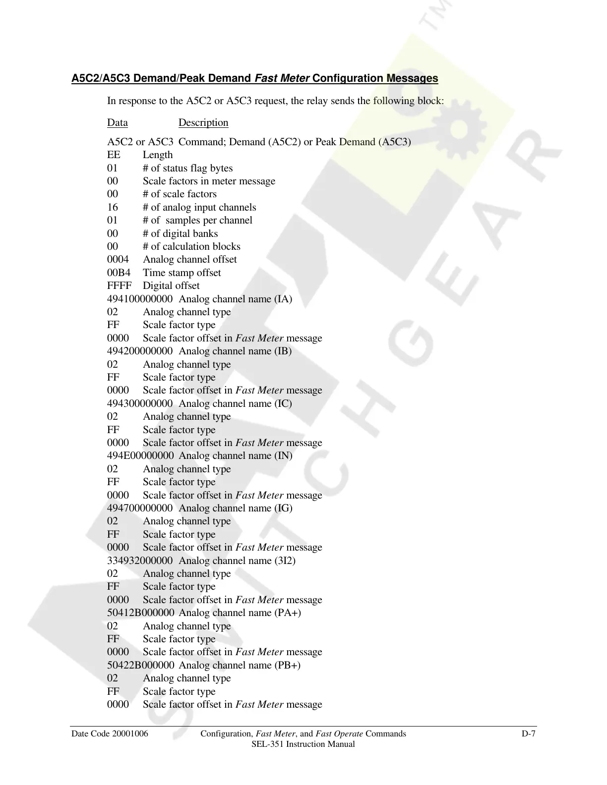 Date Code 20001006 Configuration, Fast Meter, and Fast Operate Commands D-7