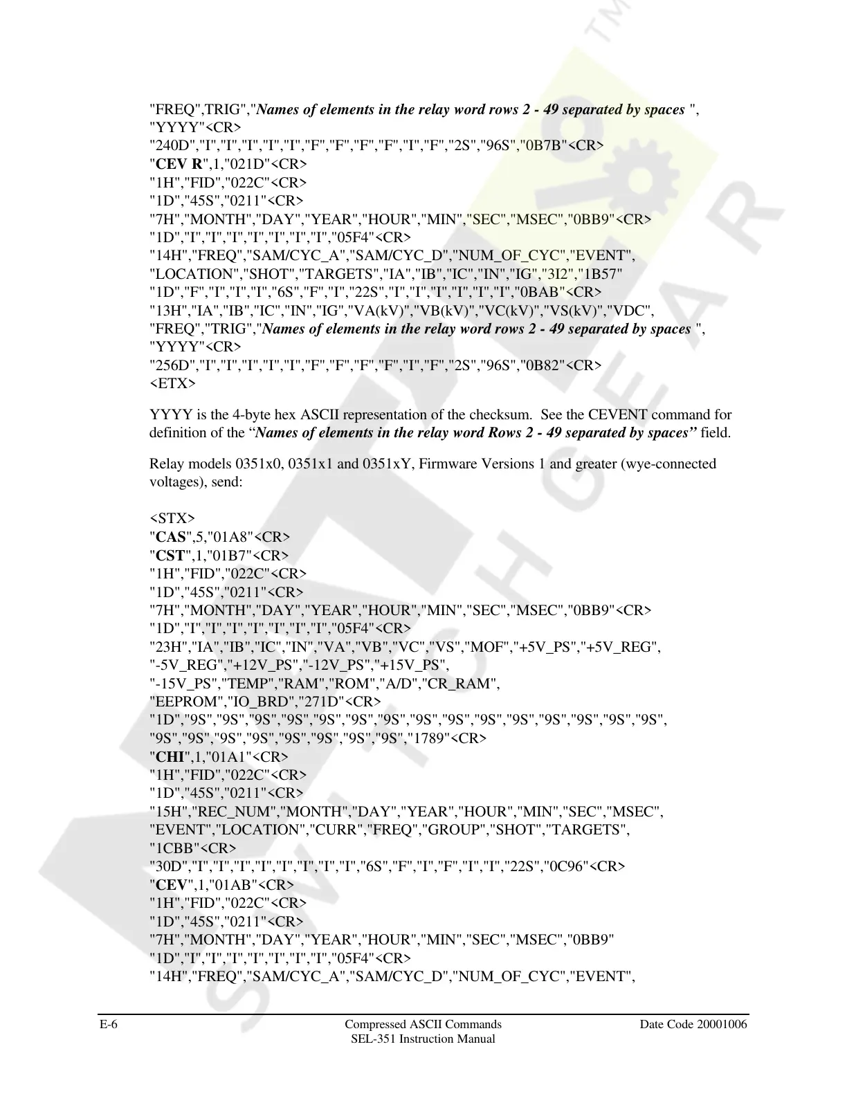 E-6 Compressed ASCII Commands Date Code 20001006