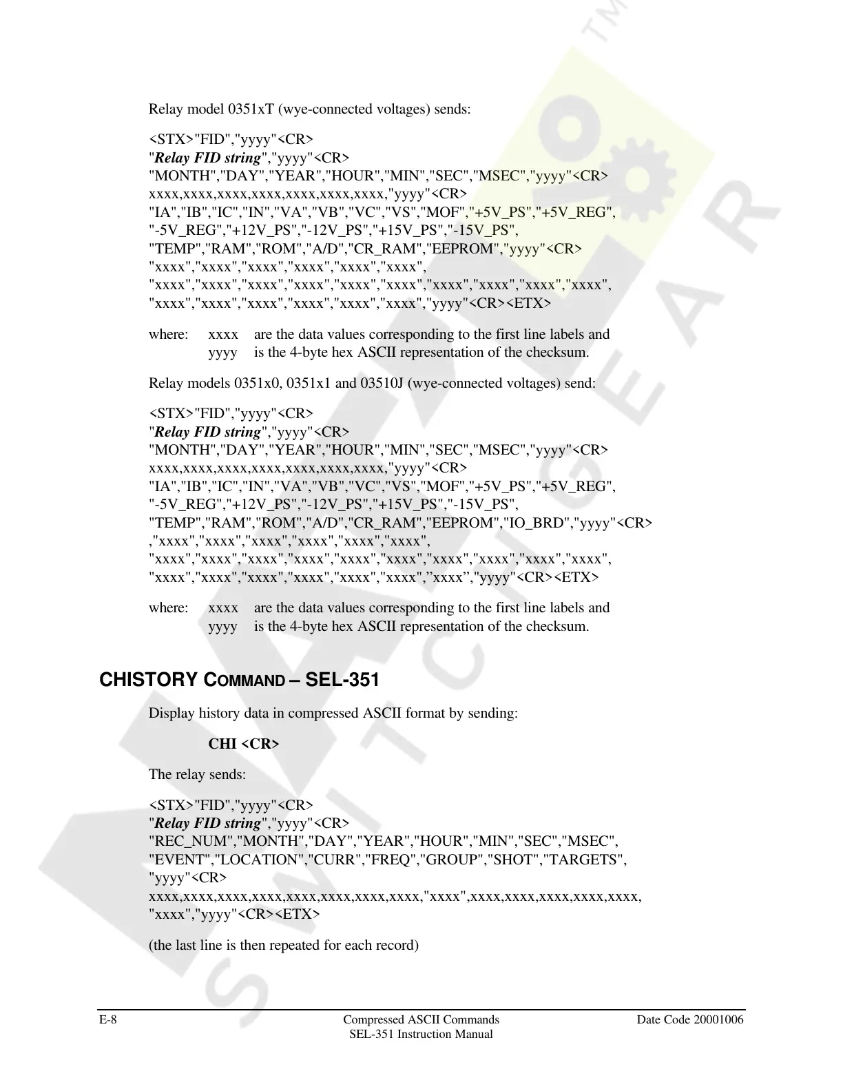 CHISTORY COMMAND – SEL-351