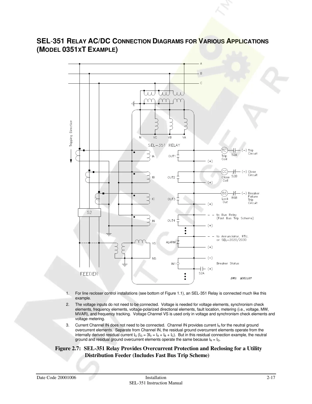 SEL-351 RELAY AC/DC CONNECTION DIAGRAMS FOR VARIOUS APPLICATIONS