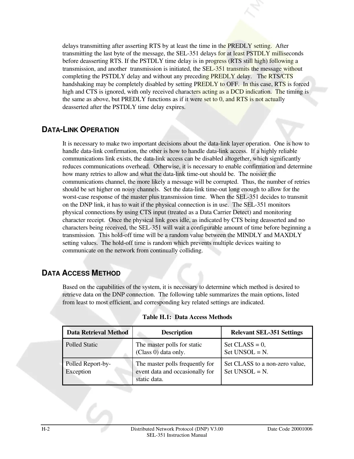 H-2 Distributed Network Protocol (DNP) V3.00 Date Code 20001006