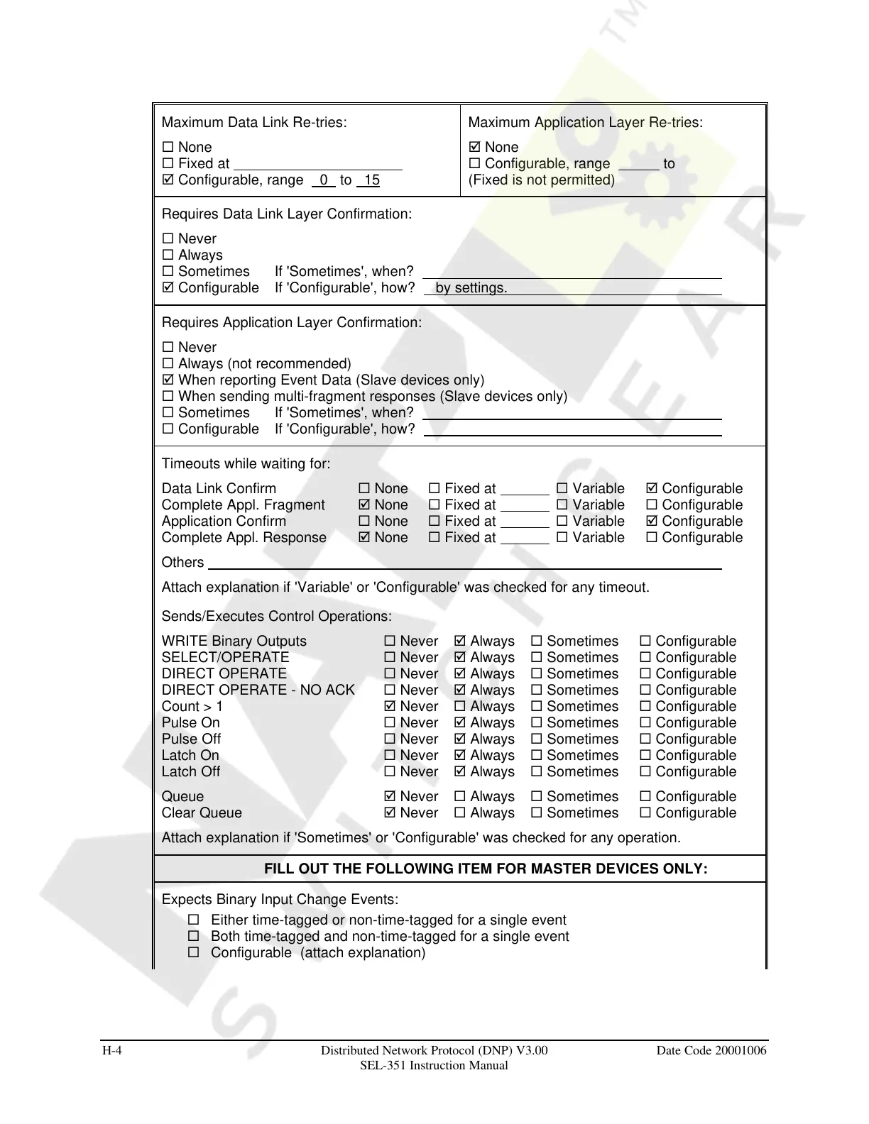 H-4 Distributed Network Protocol (DNP) V3.00 Date Code 20001006