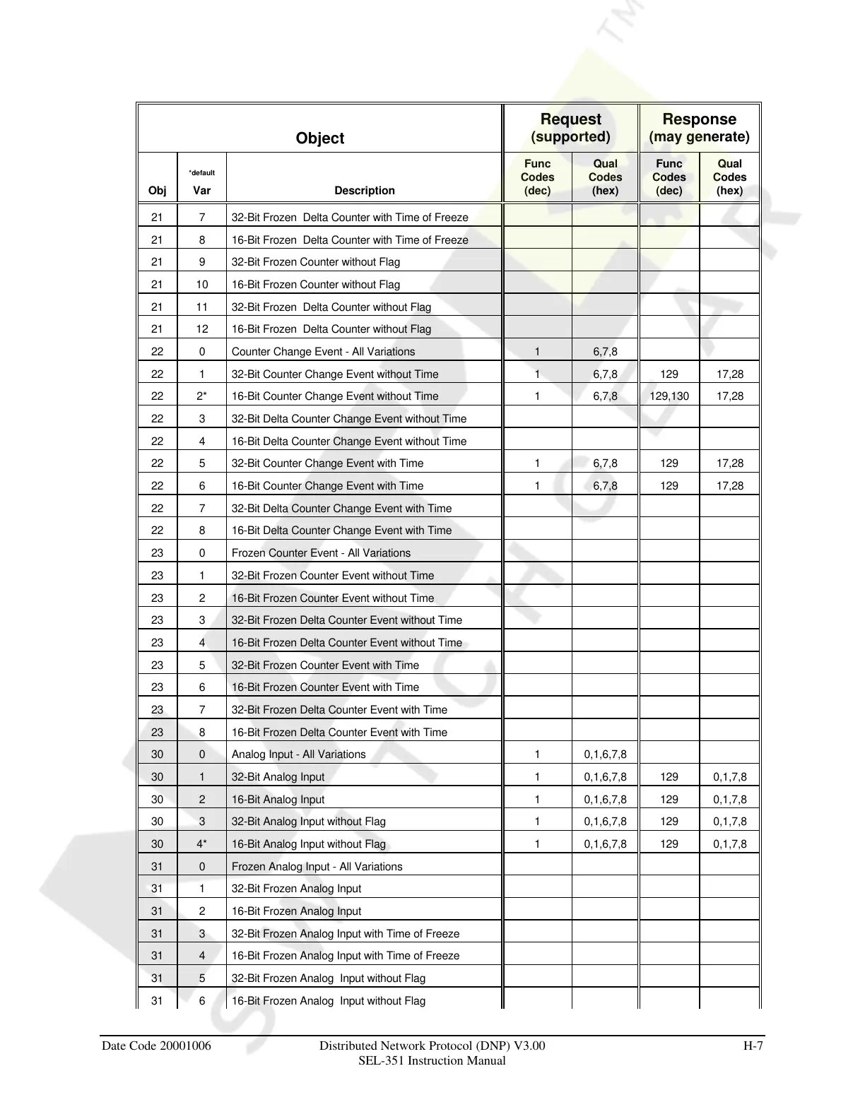 Date Code 20001006 Distributed Network Protocol (DNP) V3.00 H-7