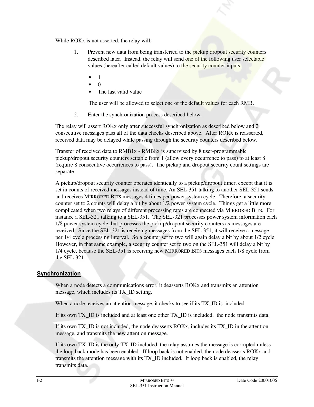 set in counts of received messages instead of time. An SEL-351 talking to another SEL-351 sends