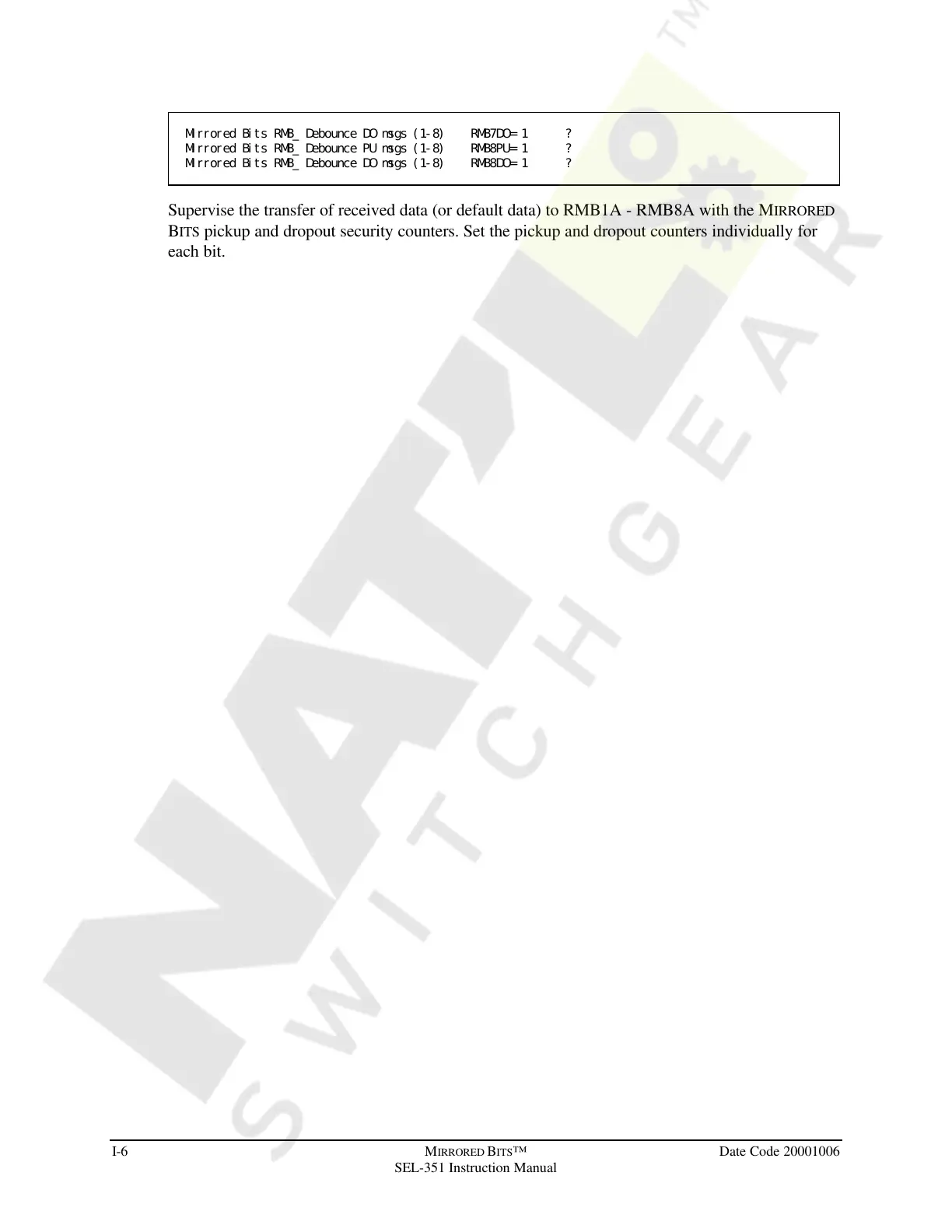 Mirrored Bits RMB_ Debounce PU msgs (1-8) RMB8PU= 1 ?