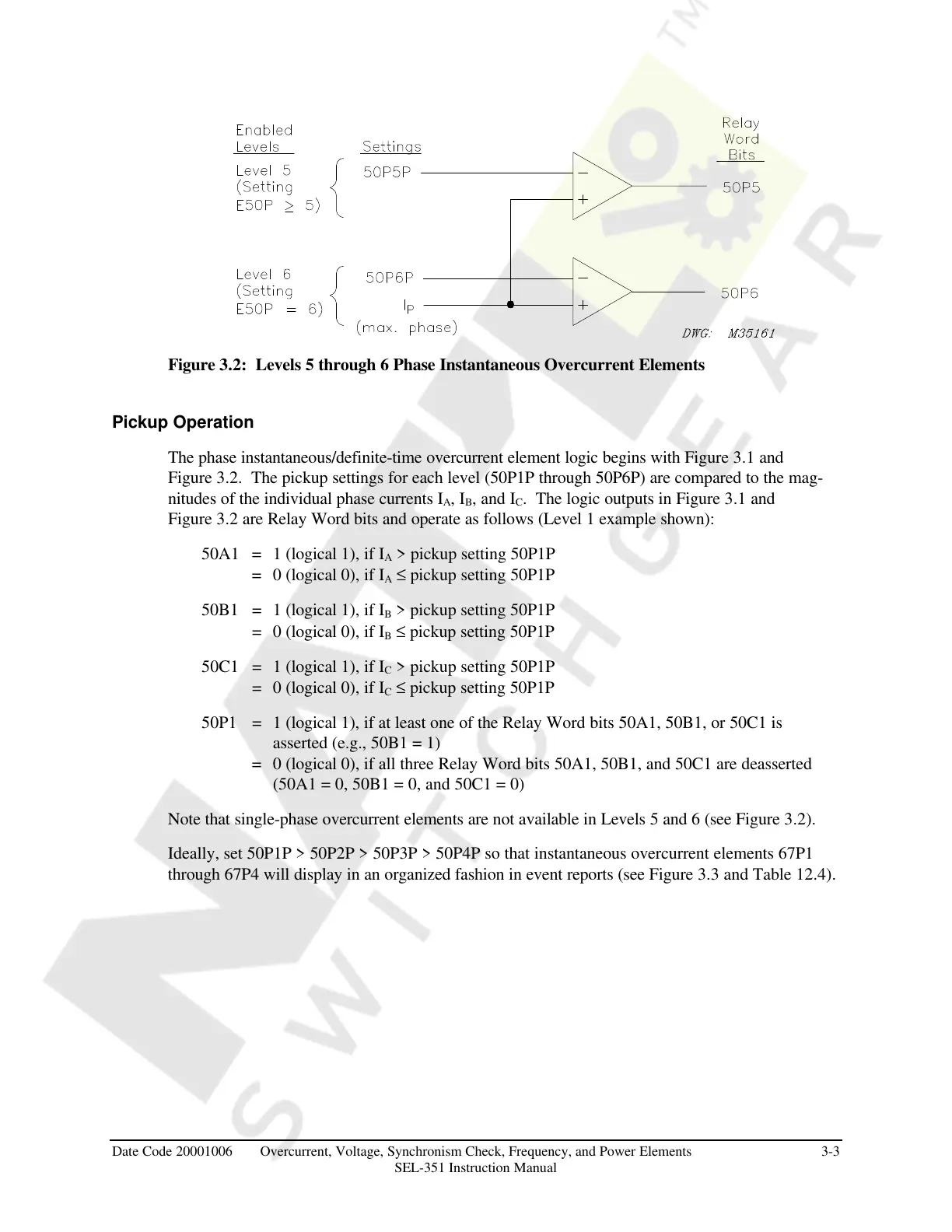 Date Code 20001006 Overcurrent, Voltage, Synchronism Check, Frequency, and Power Elements 3-3