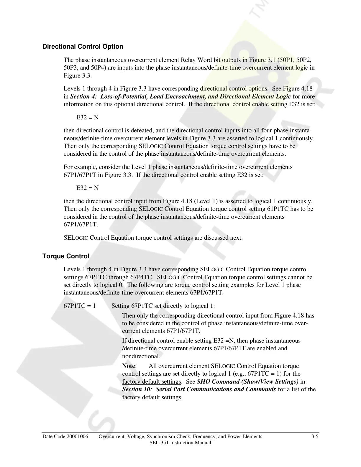 Date Code 20001006 Overcurrent, Voltage, Synchronism Check, Frequency, and Power Elements 3-5