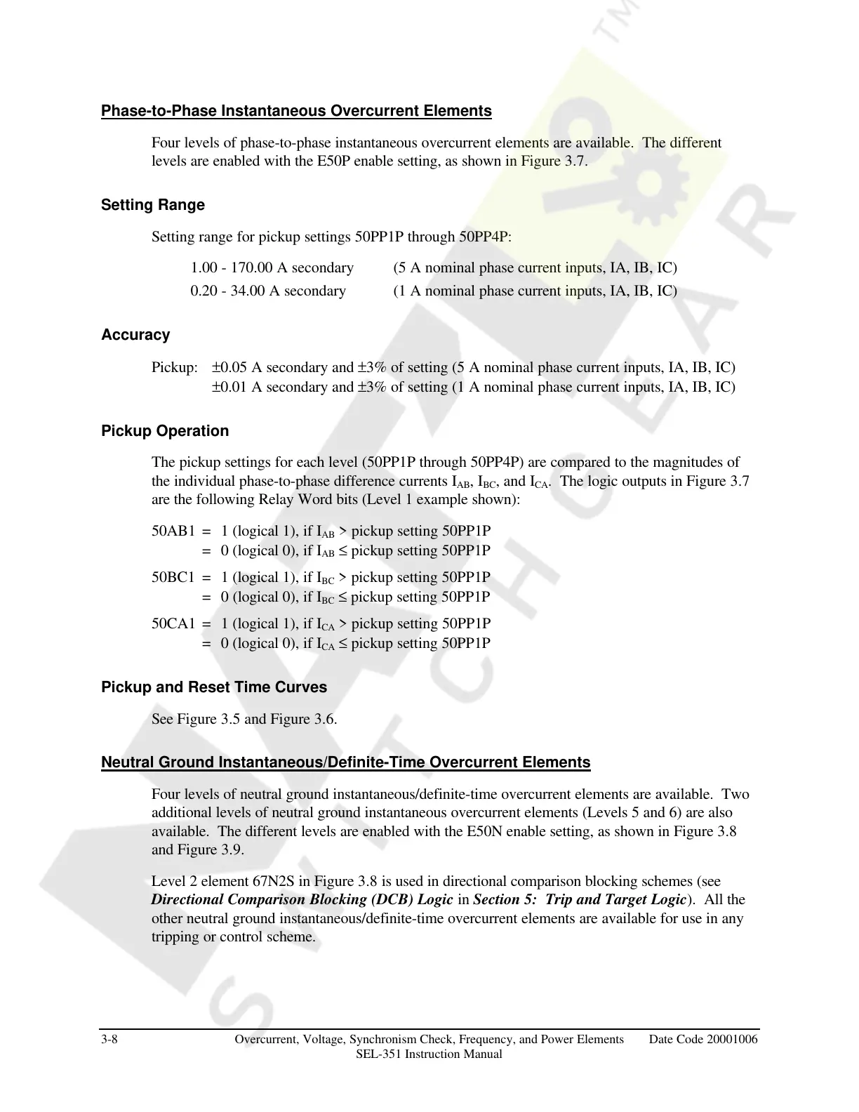 3-8 Overcurrent, Voltage, Synchronism Check, Frequency, and Power Elements Date Code 20001006