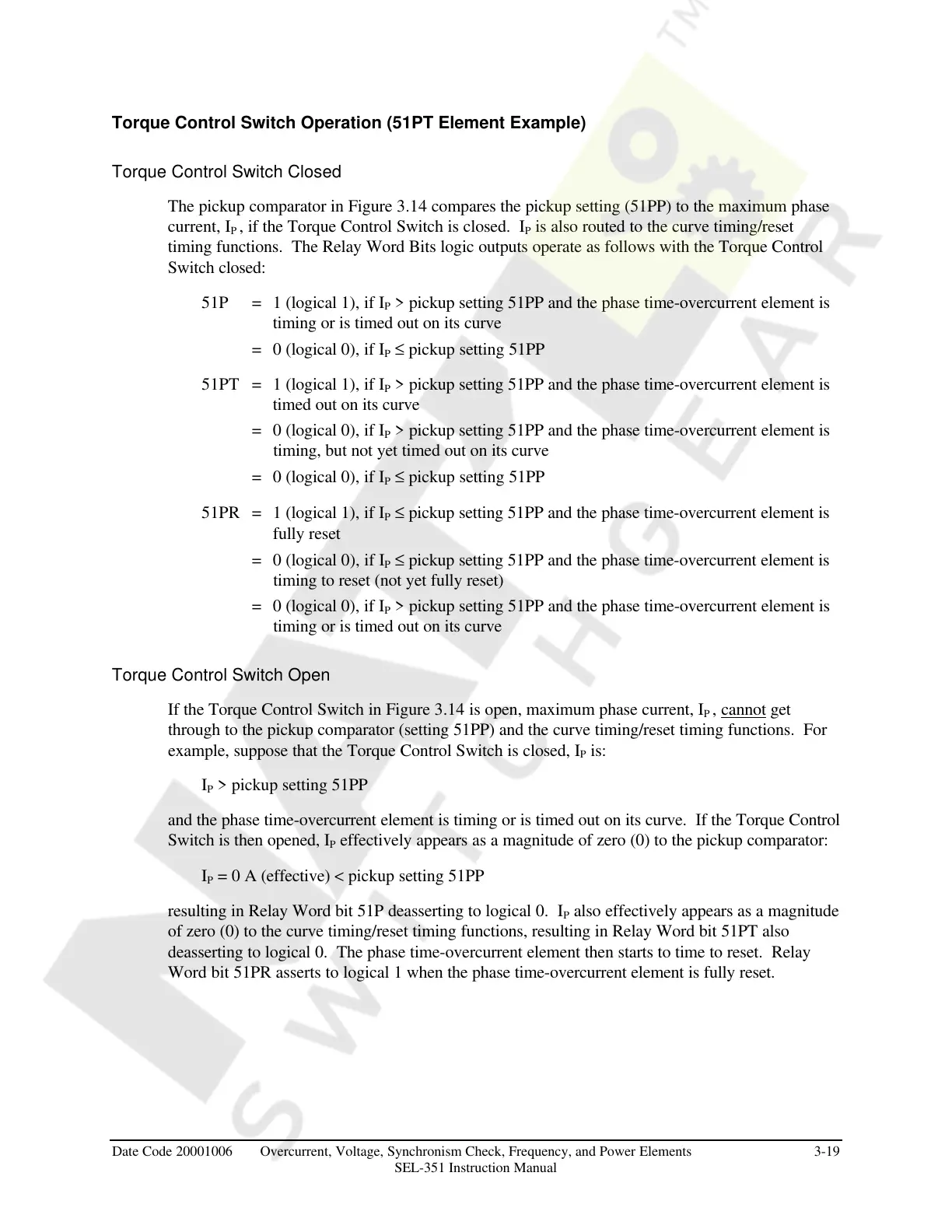 Date Code 20001006 Overcurrent, Voltage, Synchronism Check, Frequency, and Power Elements 3-19