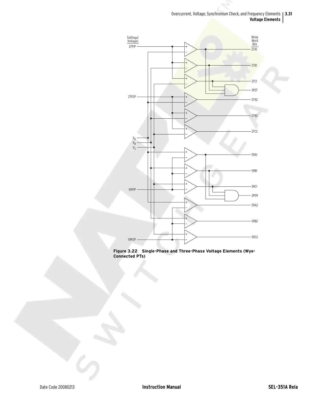 Schweitzer Engineering Laboratories SEL-351A - Figure 3.22 Single-Phase and Three-Phase Voltage Elements (Wye-Connected Pts)