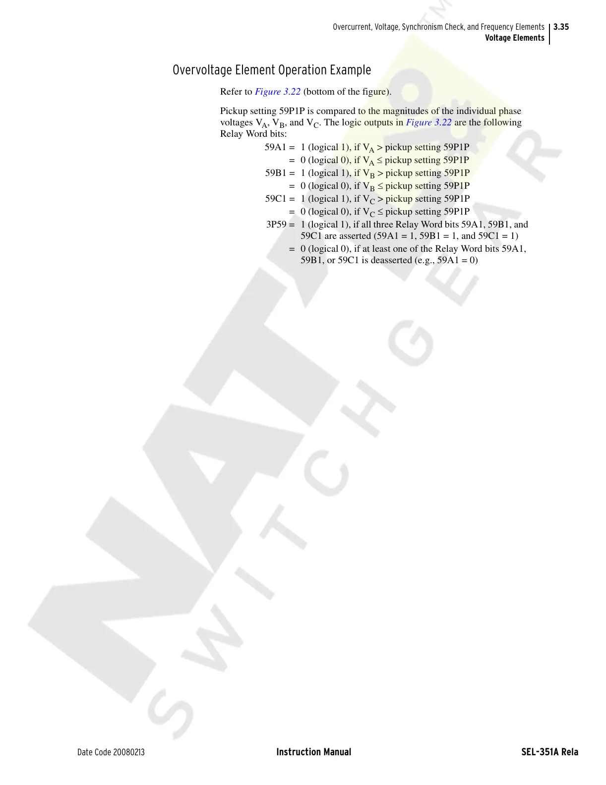 3P59 = 1 (logical 1), if all three Relay Word bits 59A1, 59B1, and
