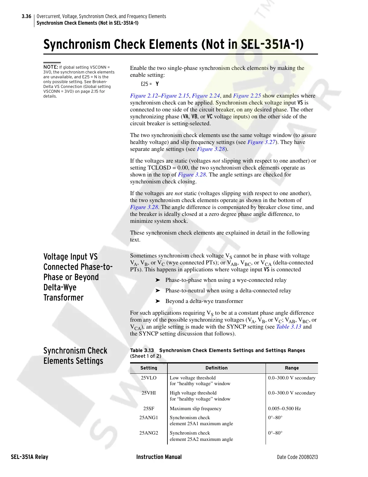 Synchronism Check Elements (Not in SEL-351A-1)