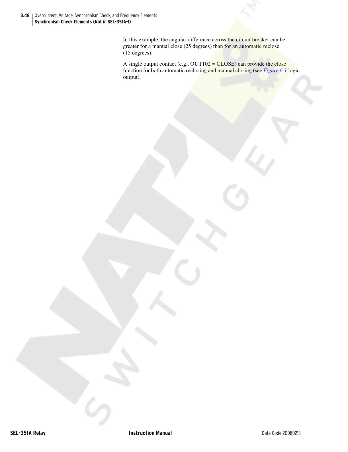 Synchronism Check Elements (Not in SEL-351A-1)
