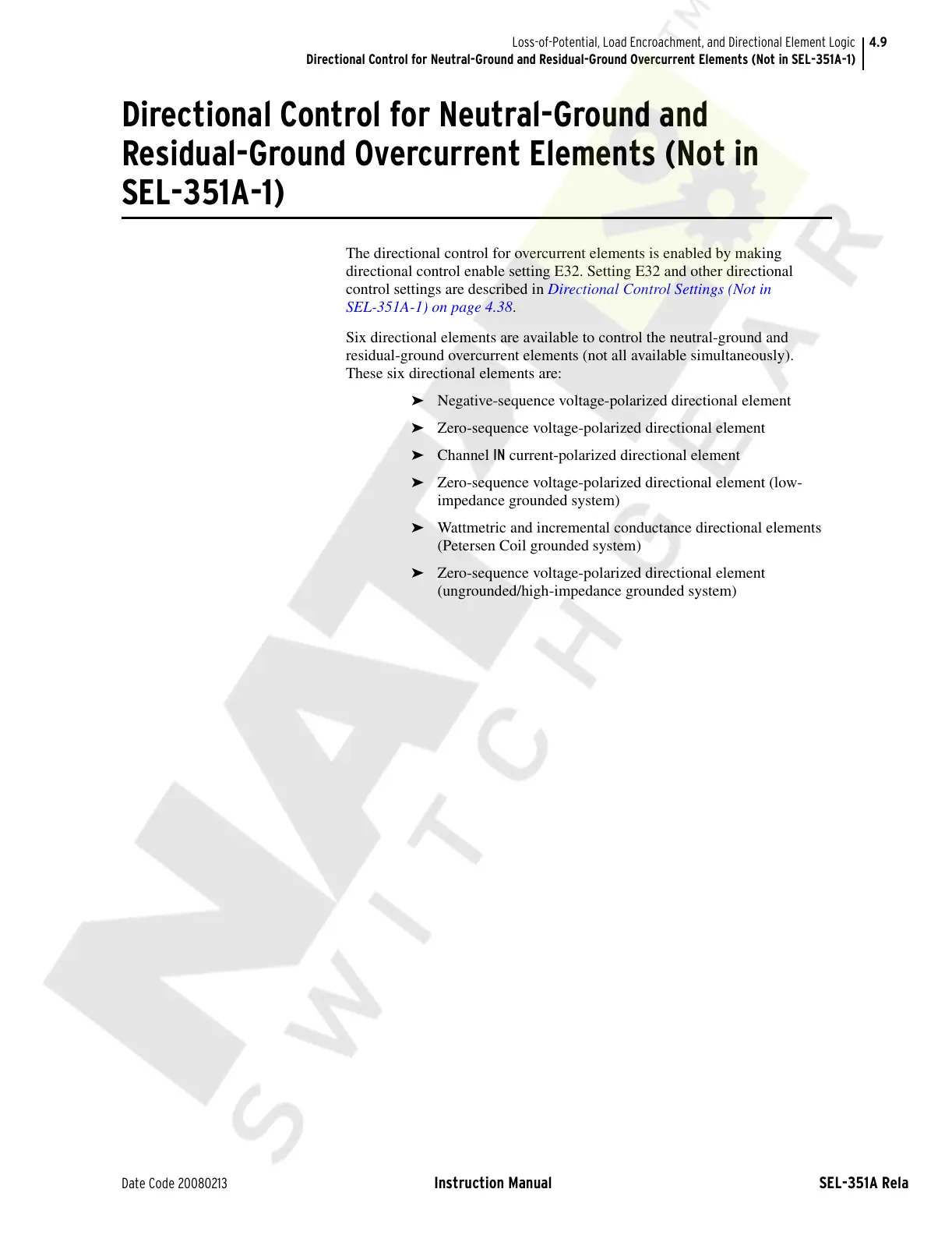 Directional Control for Neutral-Ground and Residual-Ground Overcurrent Elements (Not in SEL-351A-1)