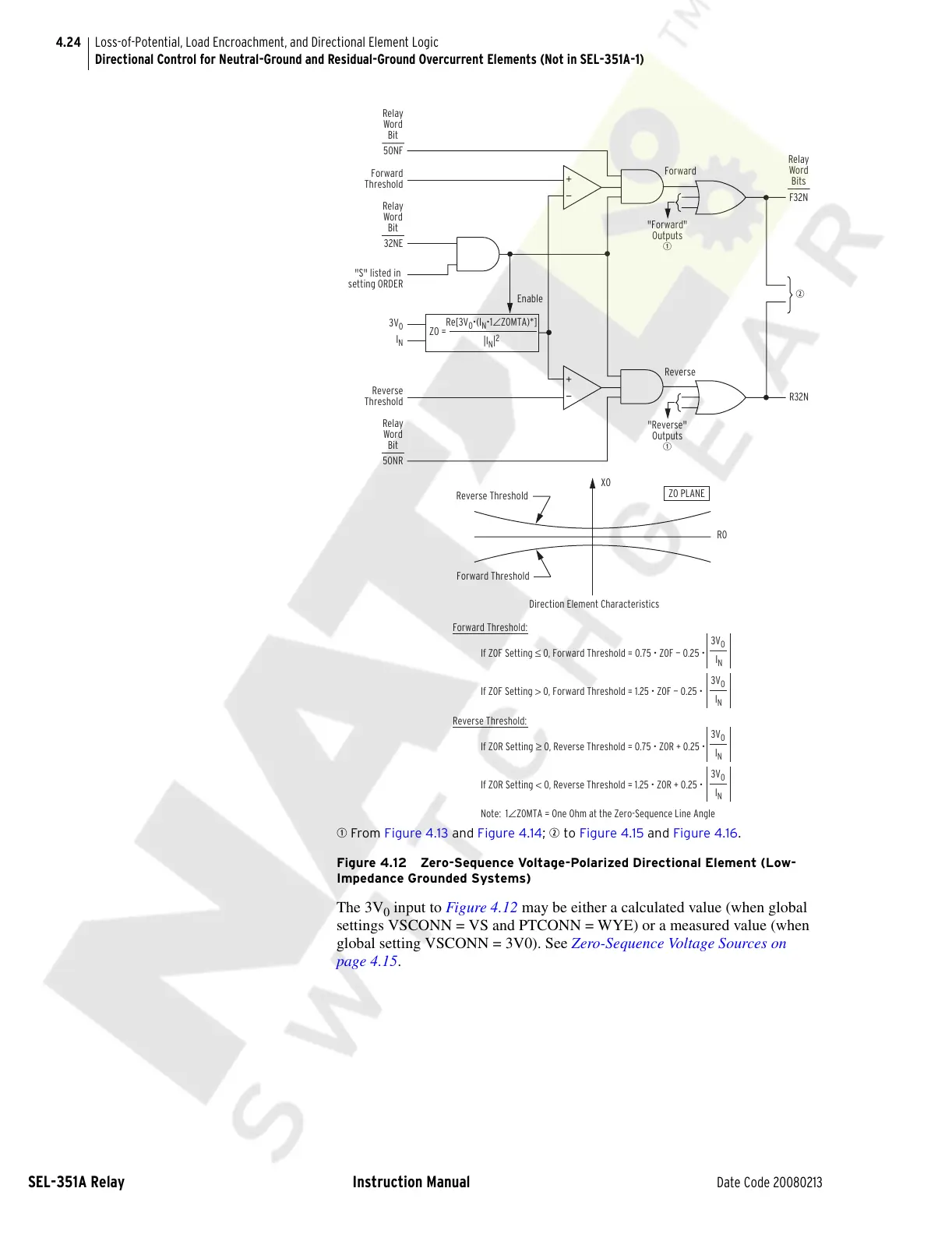 Figure 4.12 Zero-Sequence Voltage-Polarized Directional Element (Low-