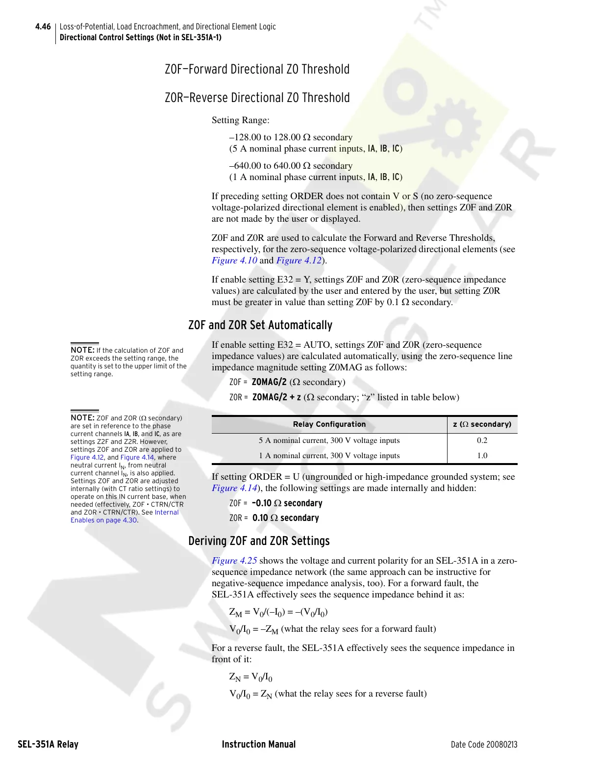 voltage-polarized directional element is enabled), then settings Z0F and Z0R