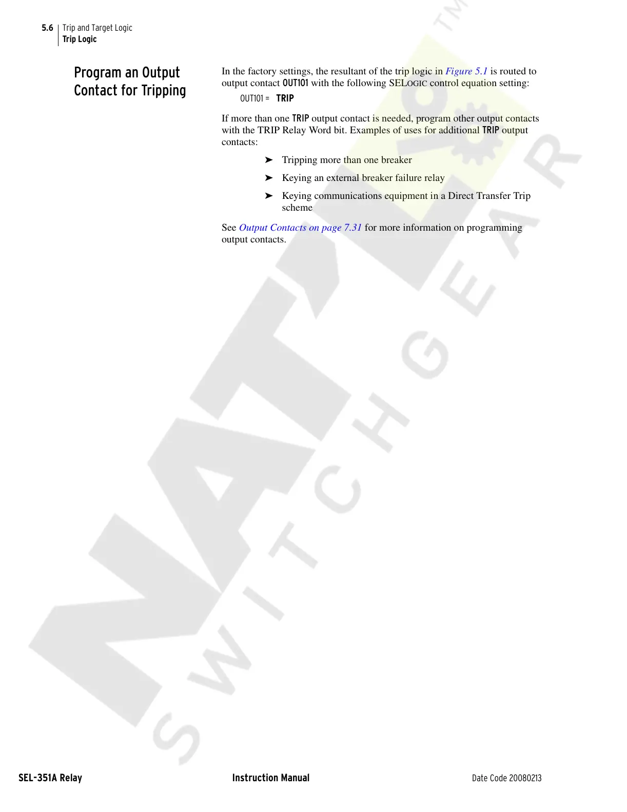 with the TRIP Relay Word bit. Examples of uses for additional TRIP output