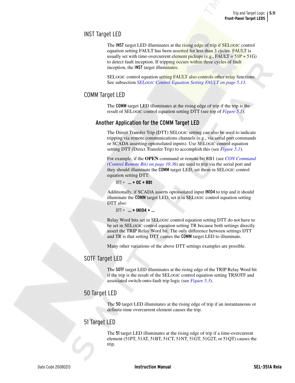 The COMM target LED illuminates at the rising edge of trip if the trip is the
