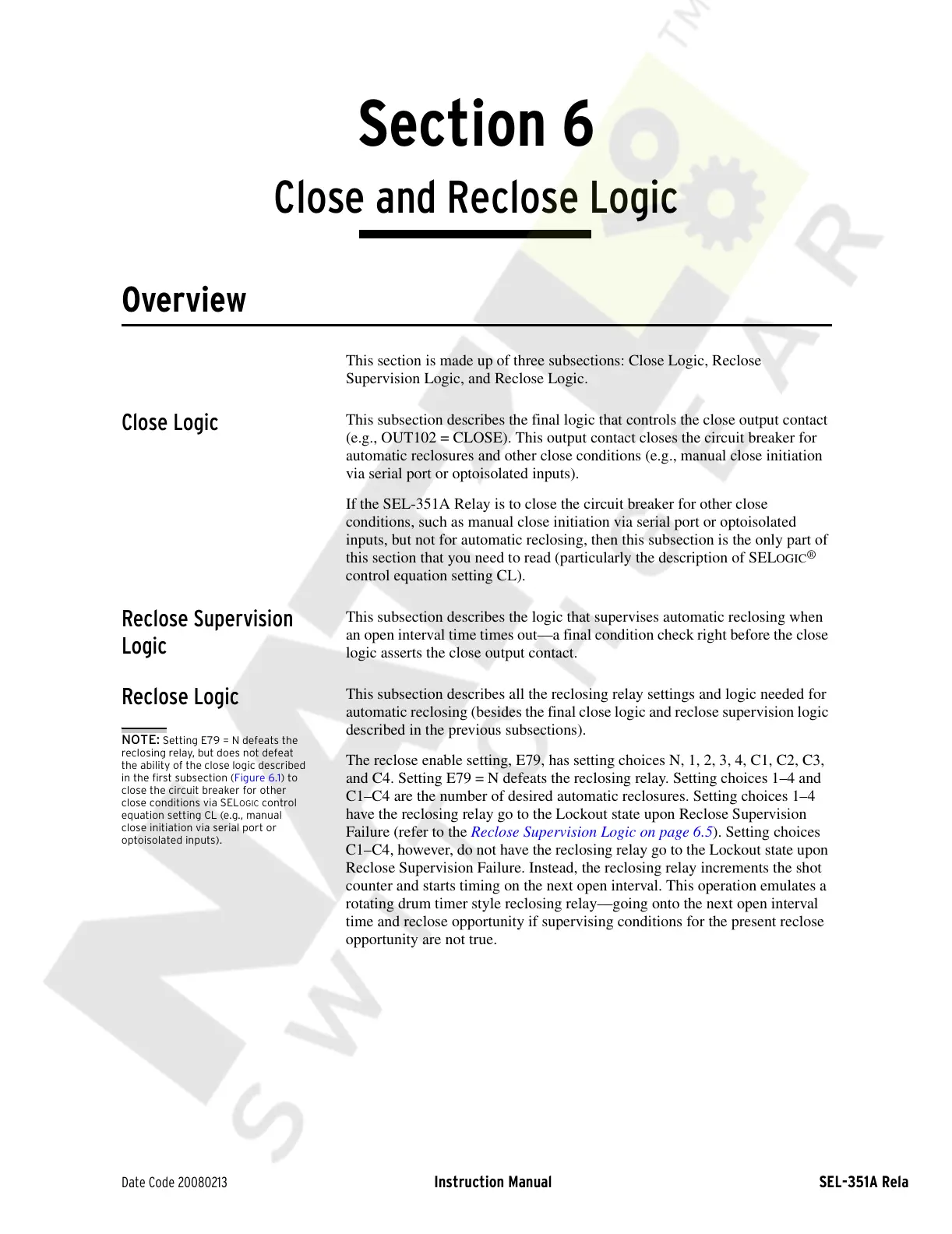 automatic reclosures and other close conditions (e.g., manual close initiation