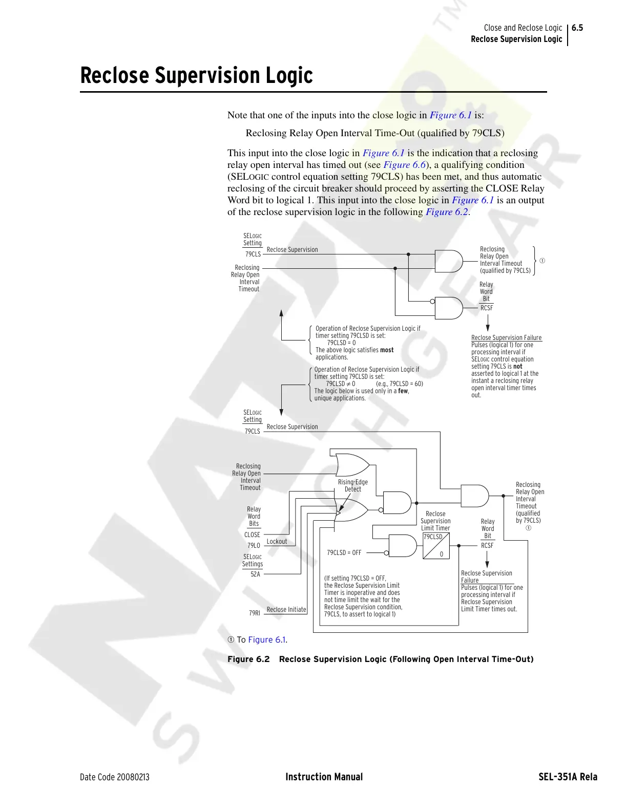 Figure 6.2 Reclose Supervision Logic (Following Open Interval Time-Out)