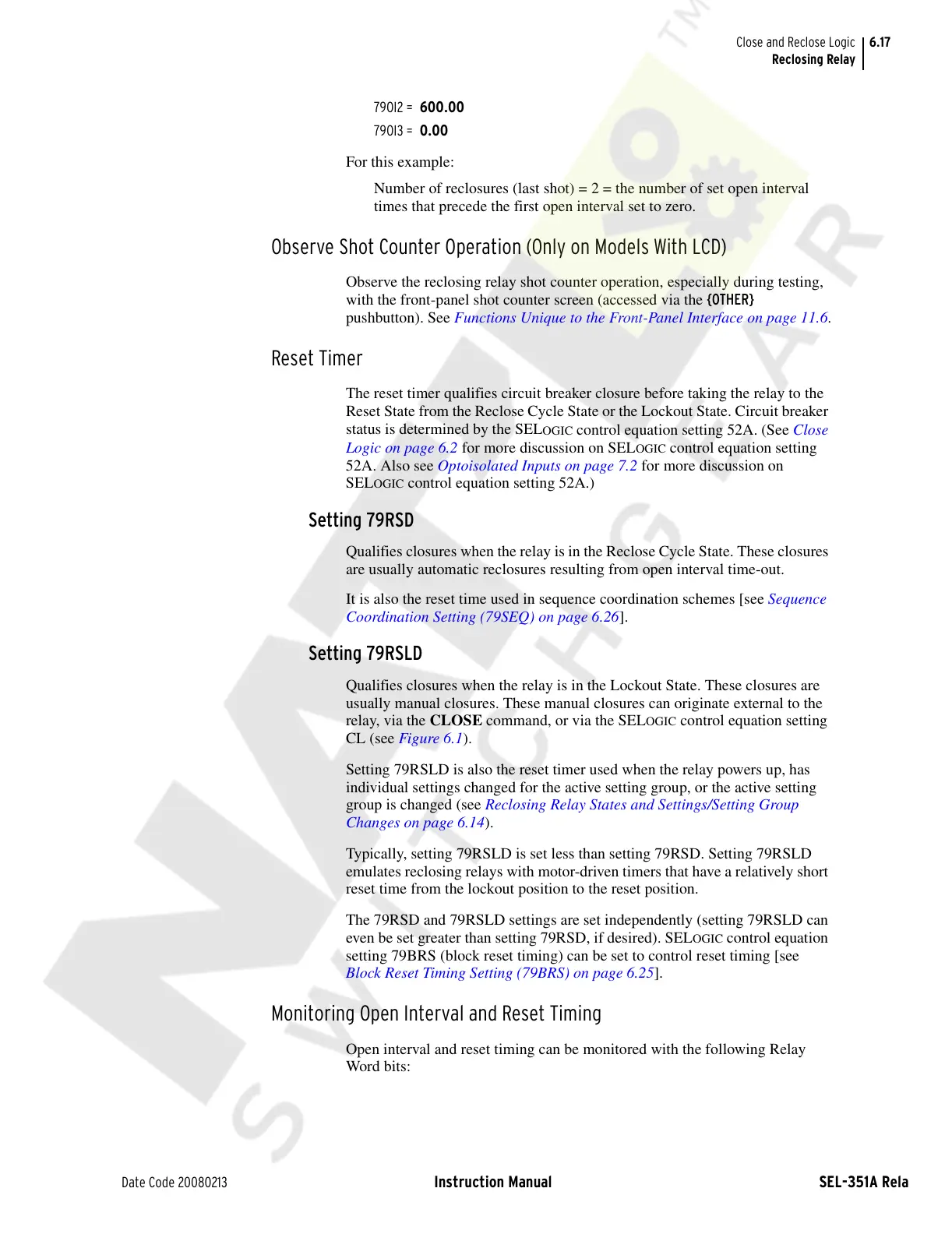 Typically, setting 79RSLD is set less than setting 79RSD. Setting 79RSLD