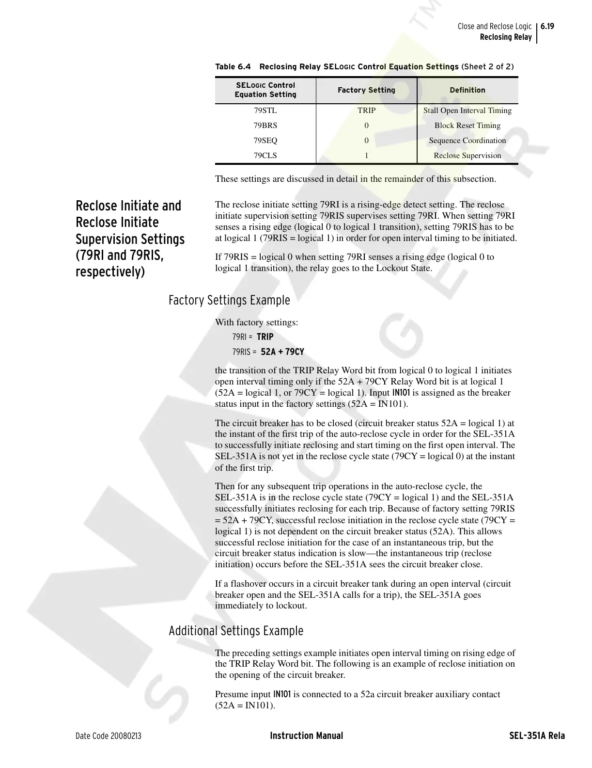 Table 6.4 Reclosing Relay SEL