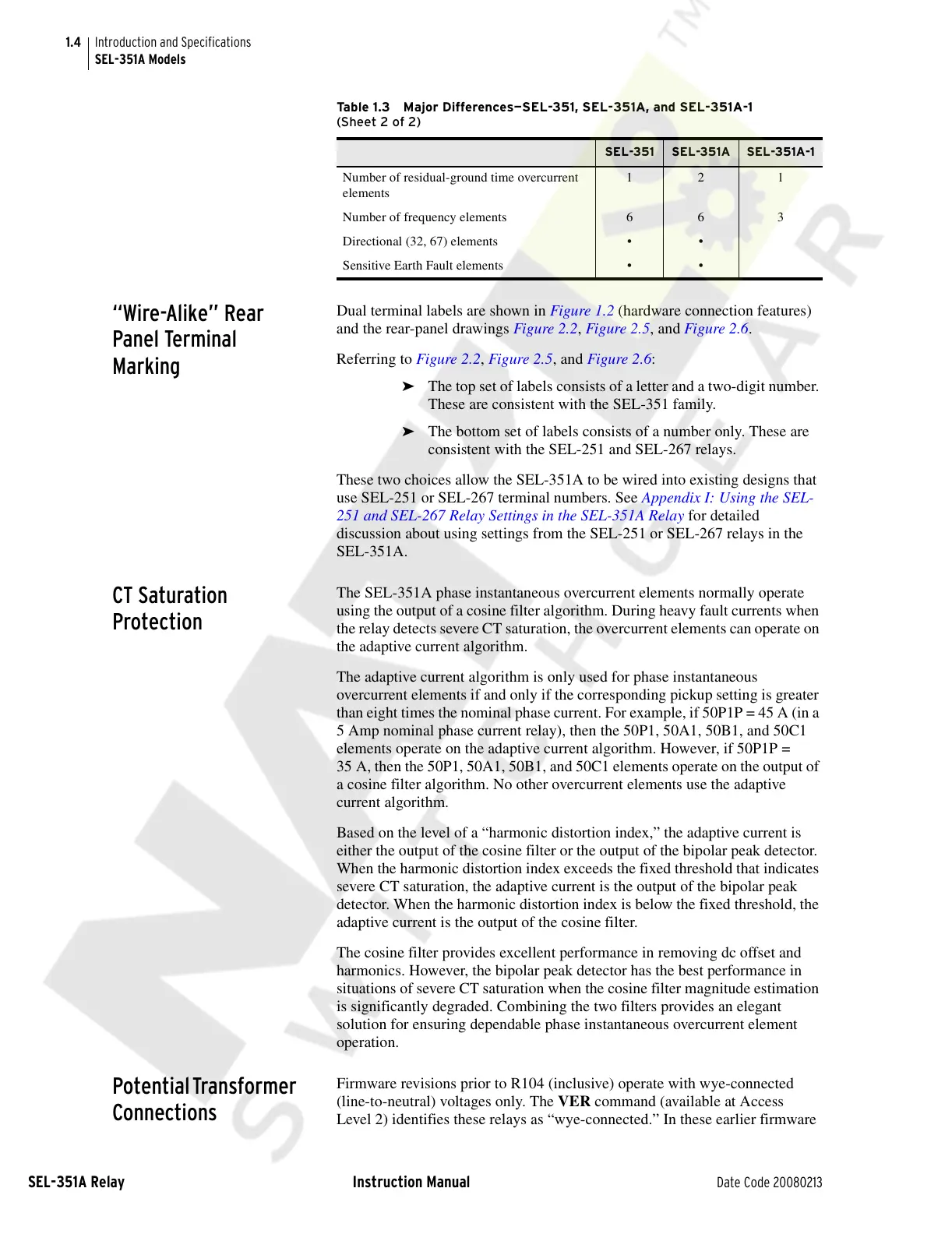 Table 1.3 Major Differences—SEL-351, SEL-351A, and SEL-351A-1