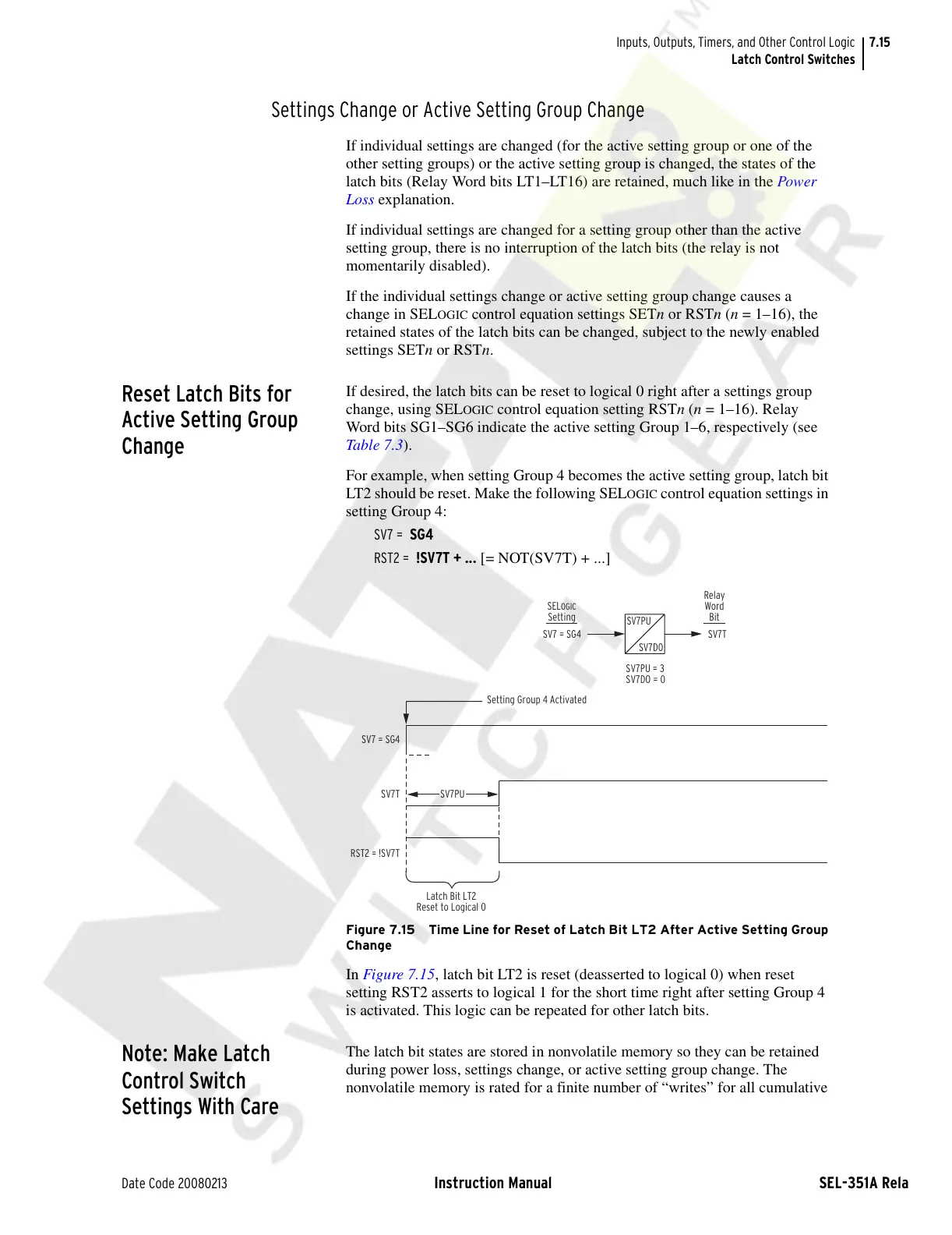 setting group, there is no interruption of the latch bits (the relay is not