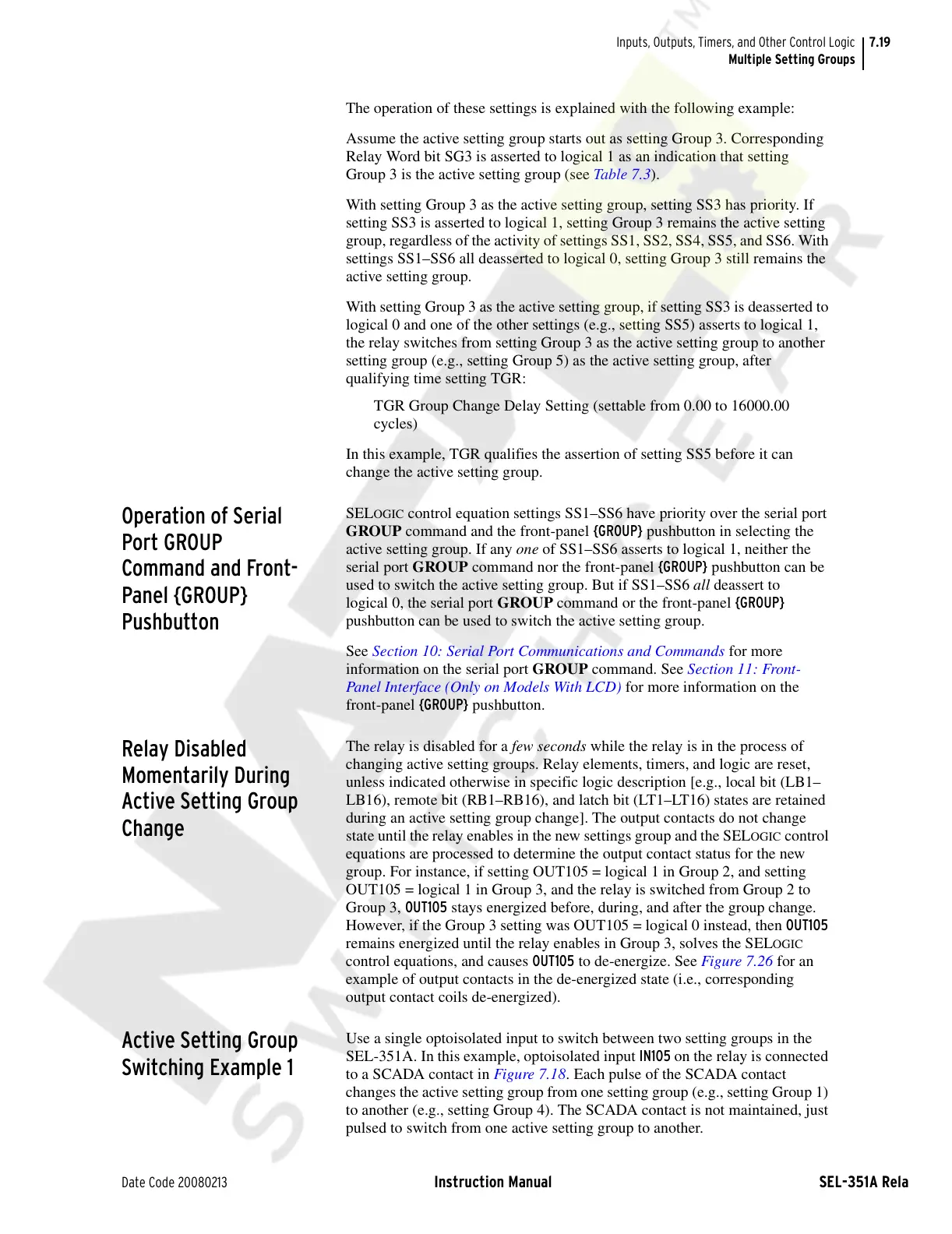 to another (e.g., setting Group 4). The SCADA contact is not maintained, just