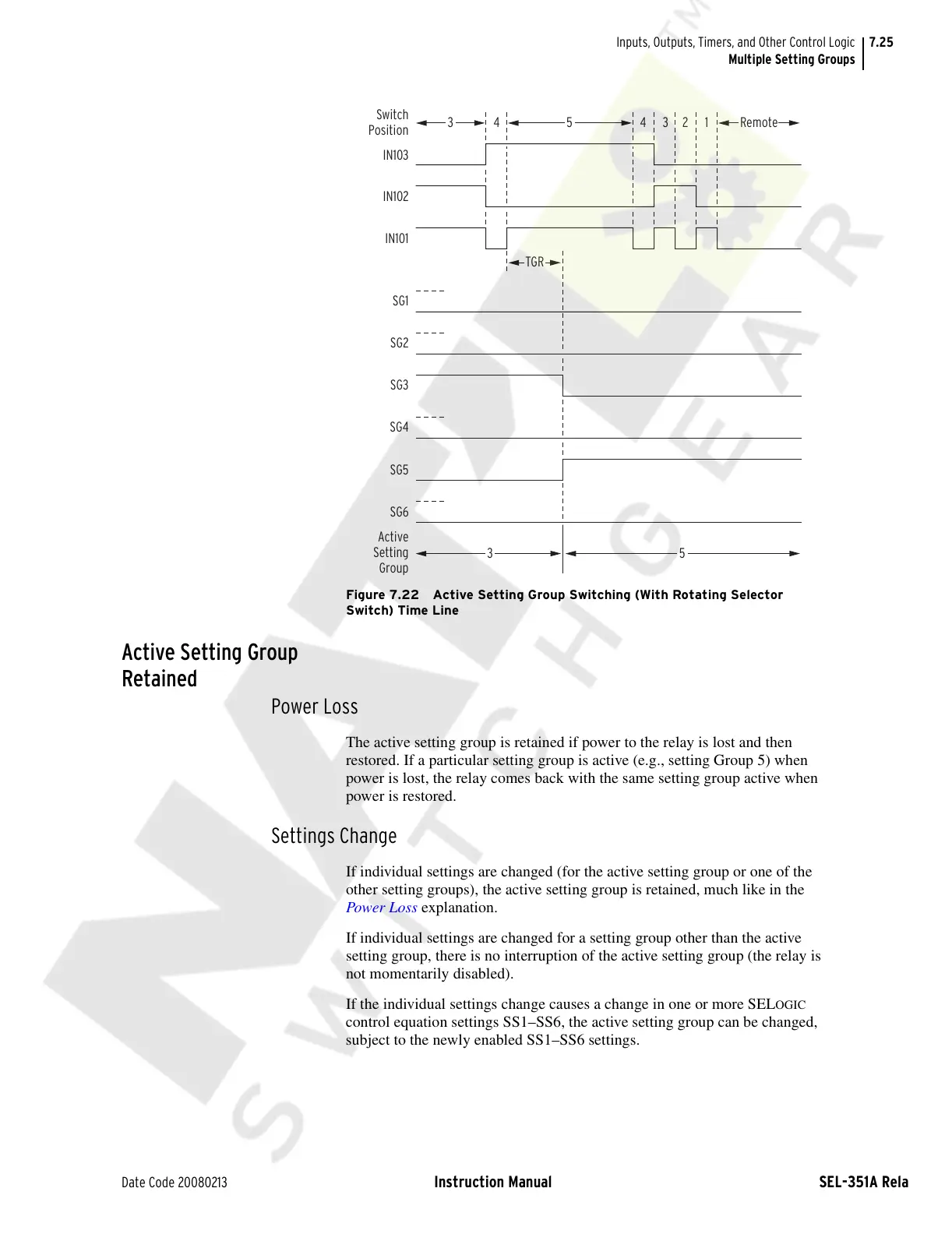setting group, there is no interruption of the active setting group (the relay is