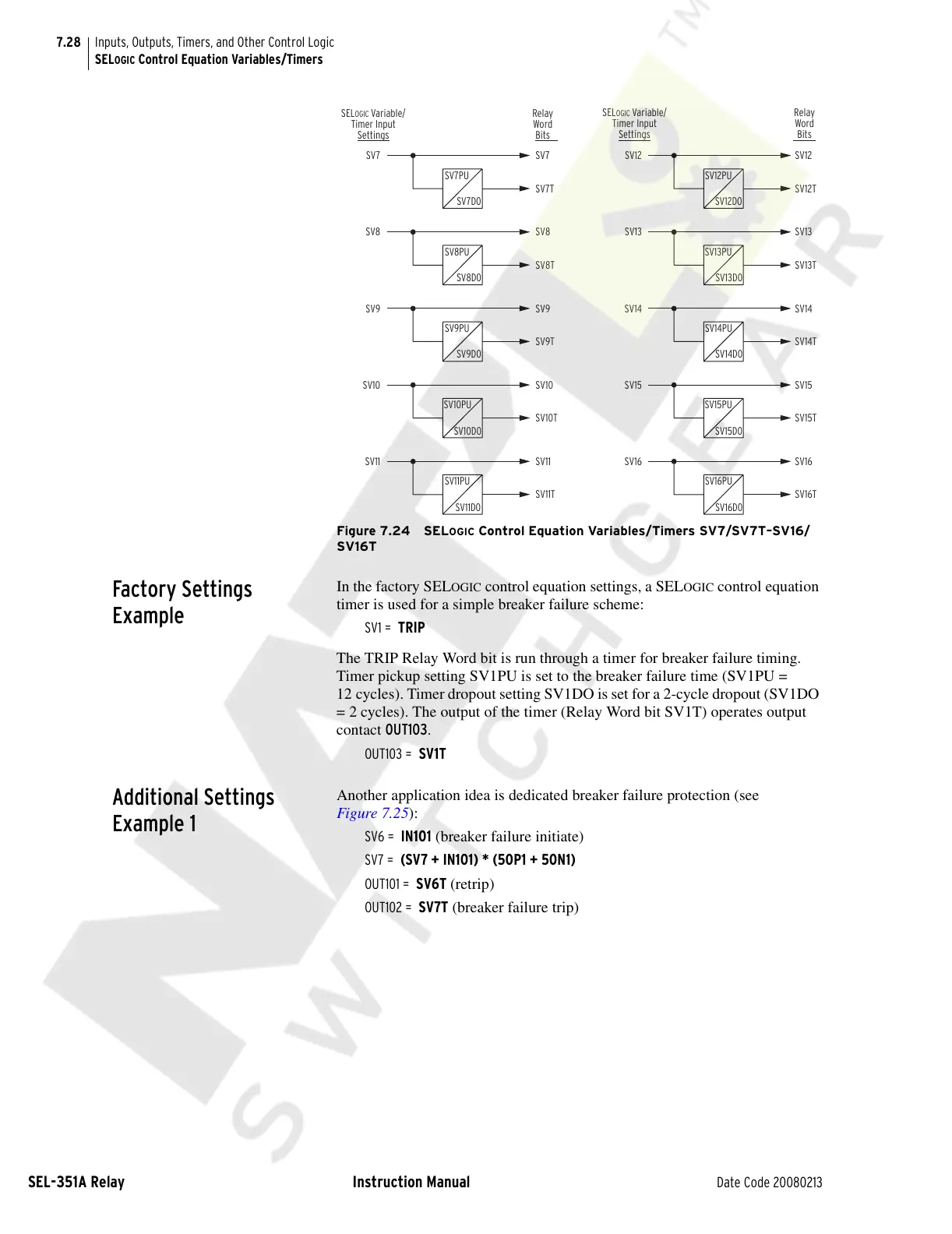 Figure 7.24 SELOGIC Control Equation Variables/Timers SV7/SV7T–SV16/