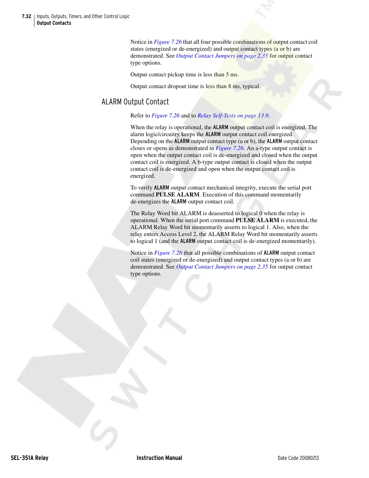 closes or opens as demonstrated in Figure 7.26. An a-type output contact is