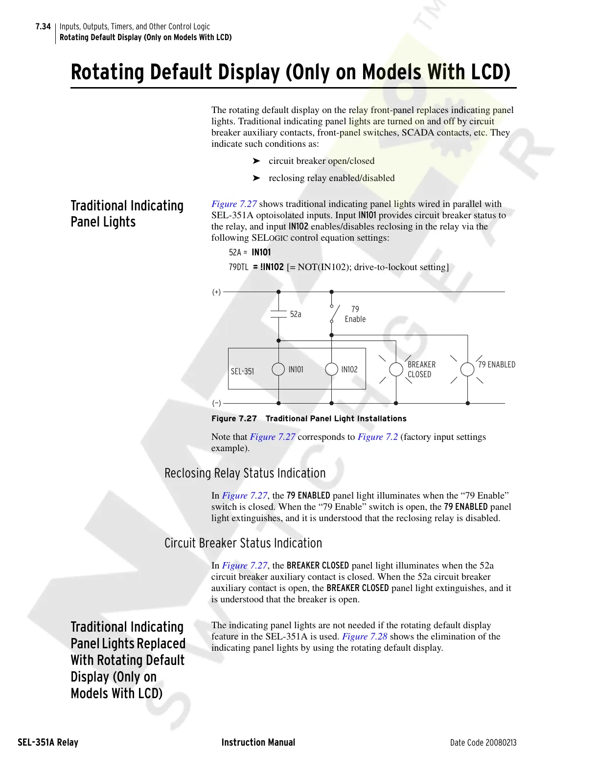 In Figure 7.27, the 79 ENABLED panel light illuminates when the “79 Enable”