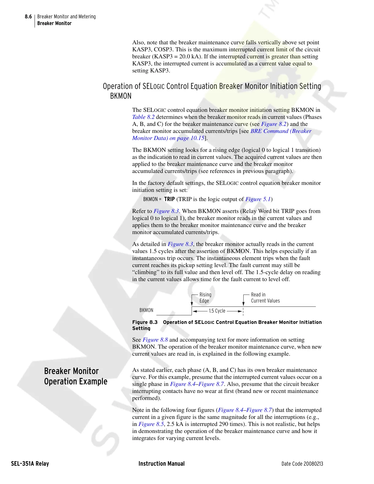 Refer to Figure 8.3. When BKMON asserts (Relay Word bit TRIP goes from