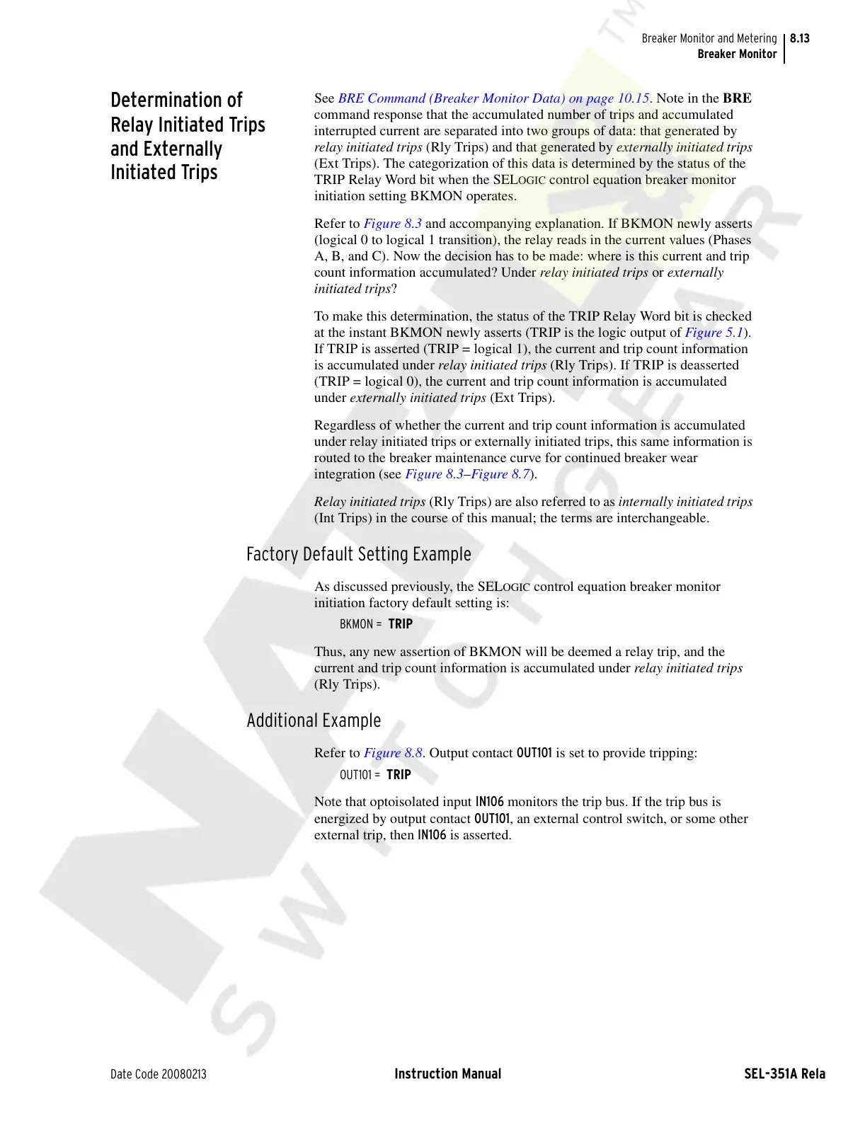 Note that optoisolated input IN106 monitors the trip bus. If the trip bus is