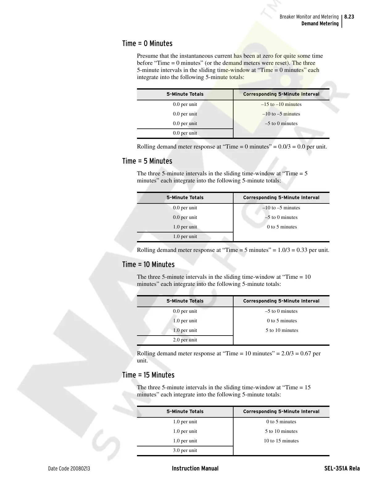 Rolling demand meter response at “Time = 0 minutes” = 0.0/3 = 0.0 per unit.