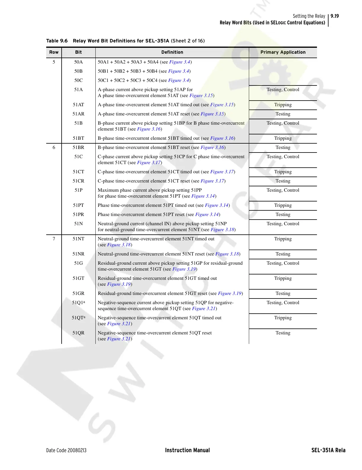 Table 9.6 Relay Word Bit Definitions for SEL-351A (Sheet 2 of 16)