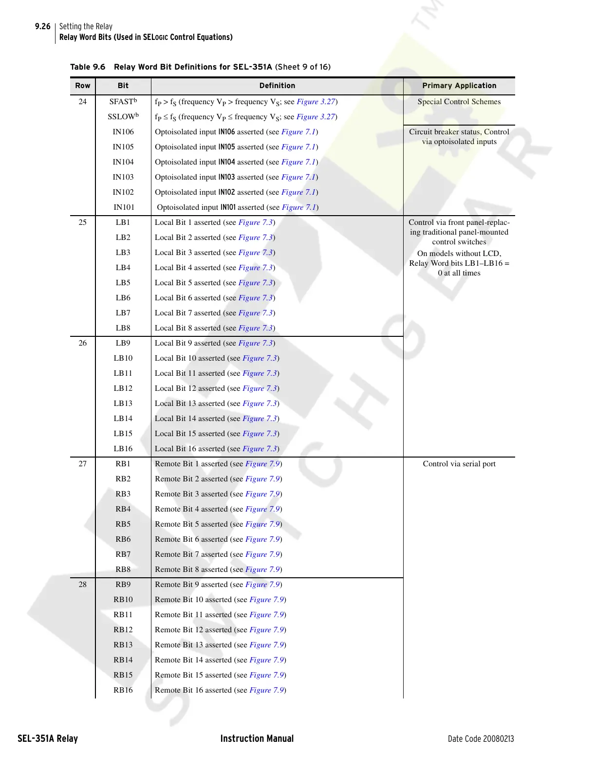 Table 9.6 Relay Word Bit Definitions for SEL-351A (Sheet 9 of 16)