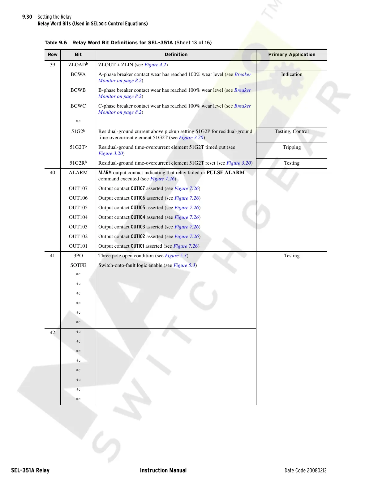 Table 9.6 Relay Word Bit Definitions for SEL-351A (Sheet 13 of 16)