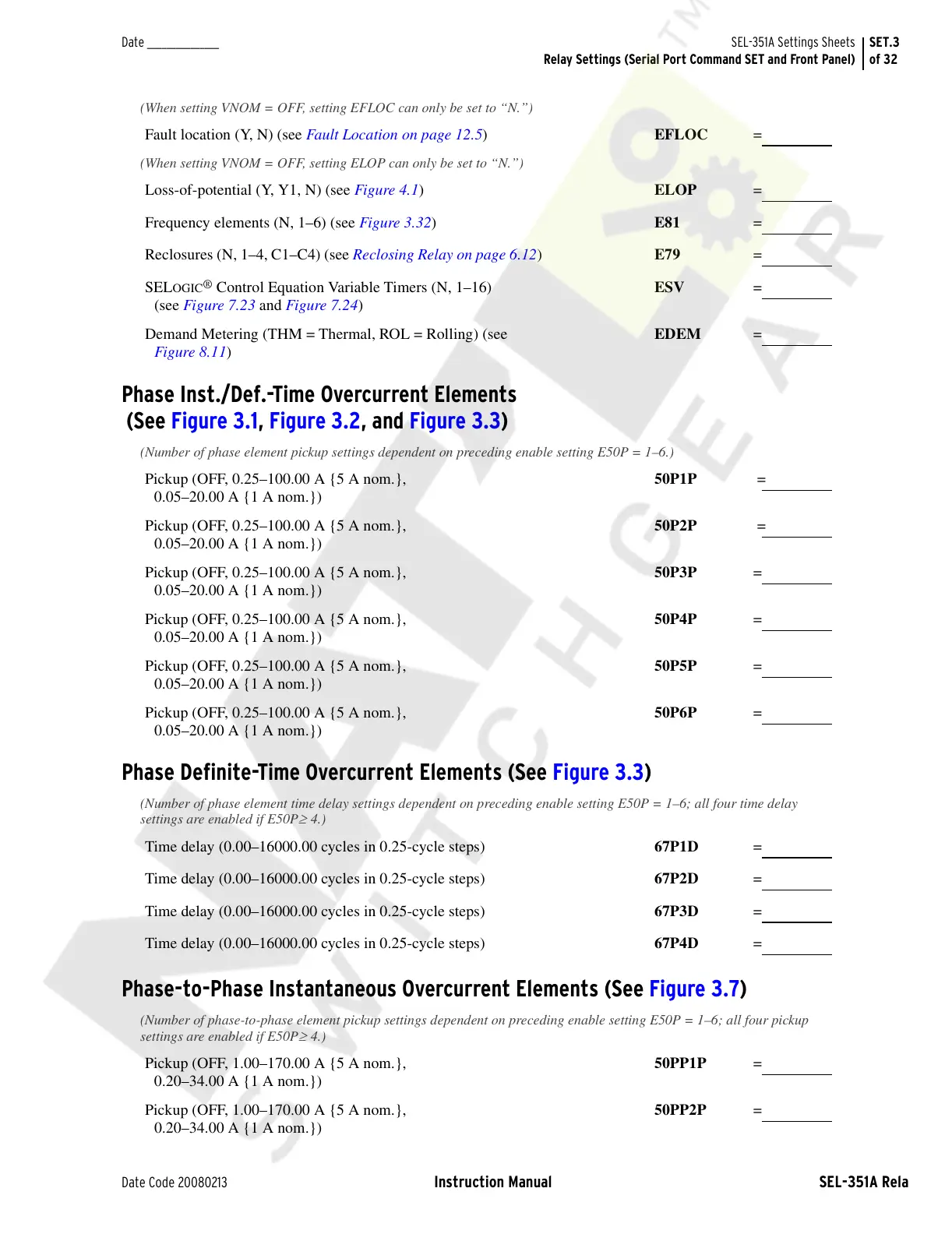 SEL-351A Settings Sheets