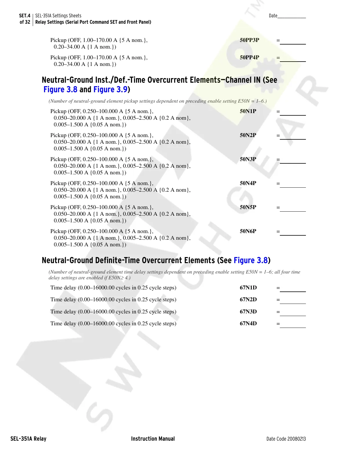 (Number of neutral-ground element pickup settings dependent on preceding enable setting E50N = 1–6.)