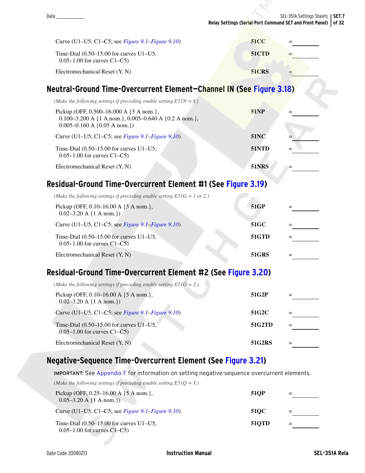 IMPORTANT: See Appendix F for information on setting negative-sequence overcurrent elements.