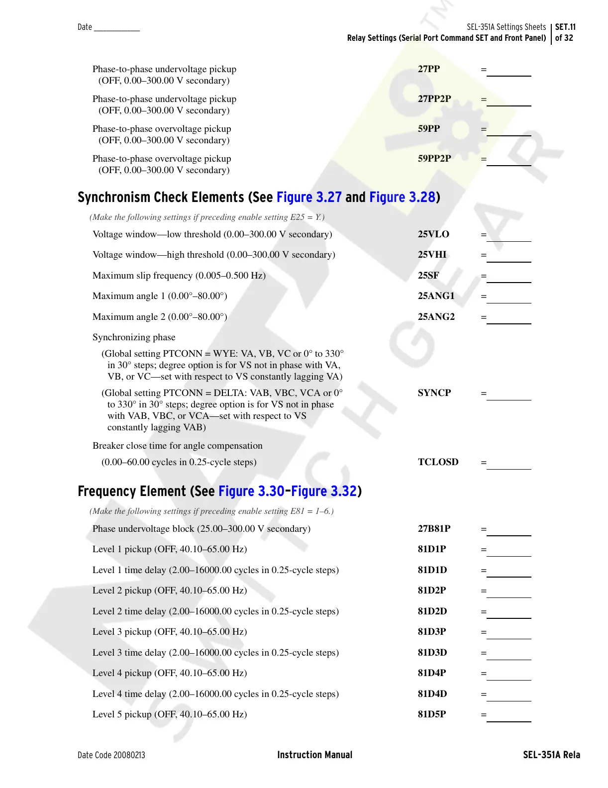 Synchronism Check Elements (See Figure 3.27 and Figure 3.28)