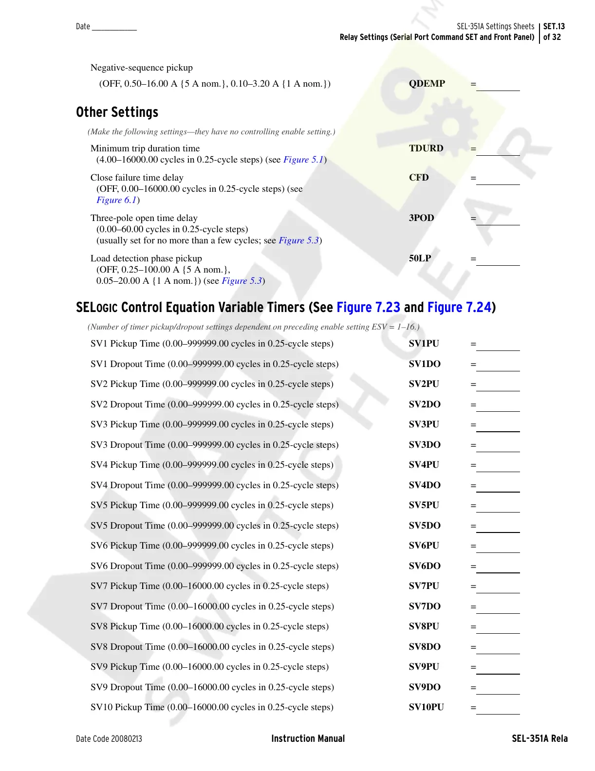 SELOGIC Control Equation Variable Timers (See Figure 7.23 and Figure 7.24)