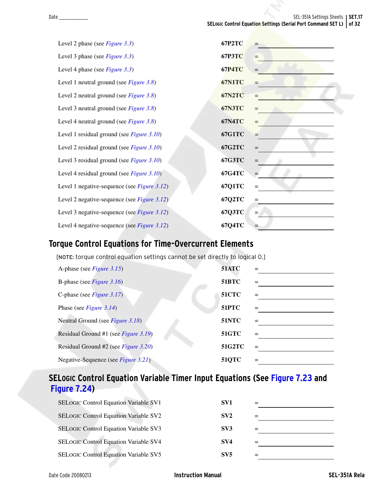 SEL-351A Settings Sheets