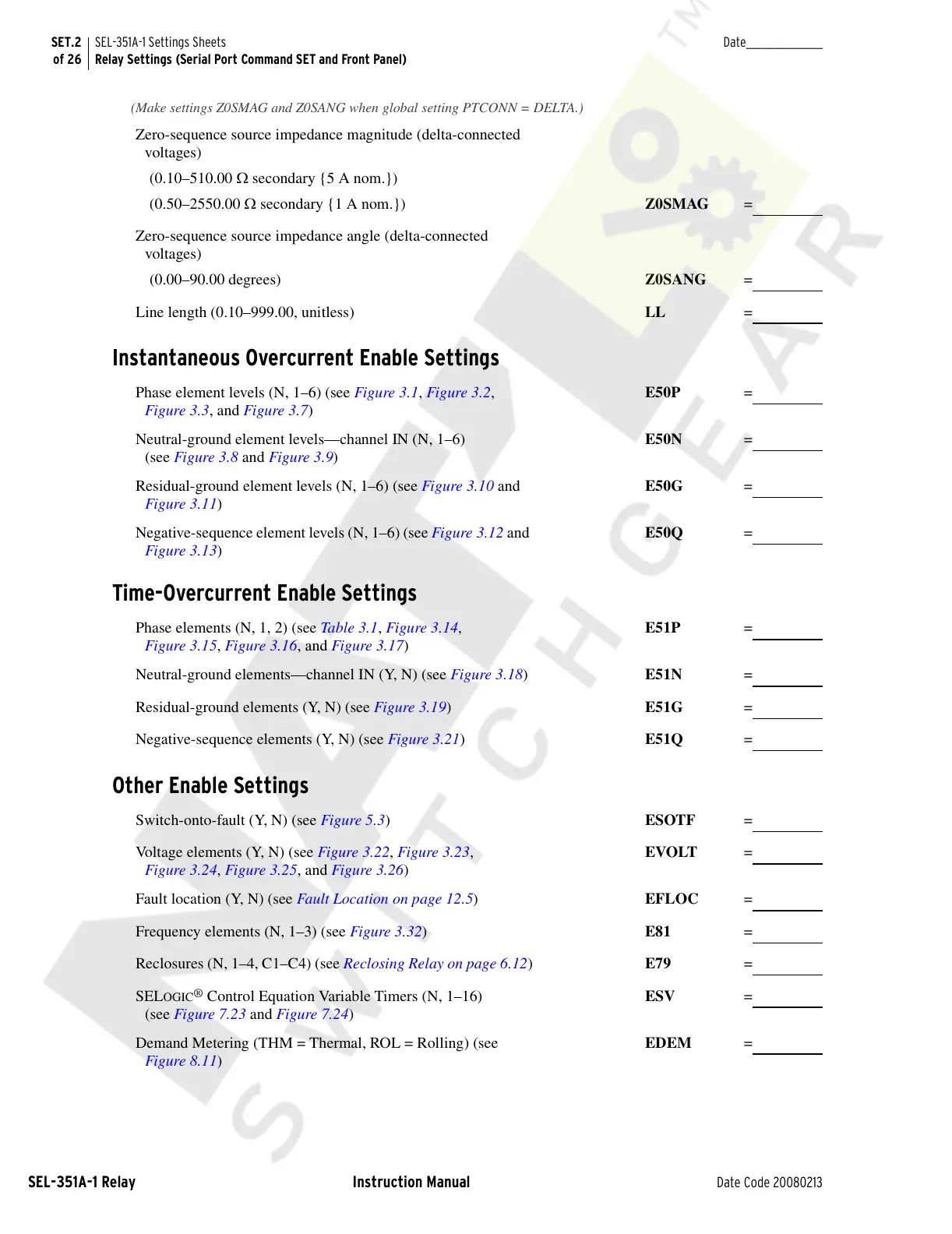 SEL-351A-1 Settings Sheets