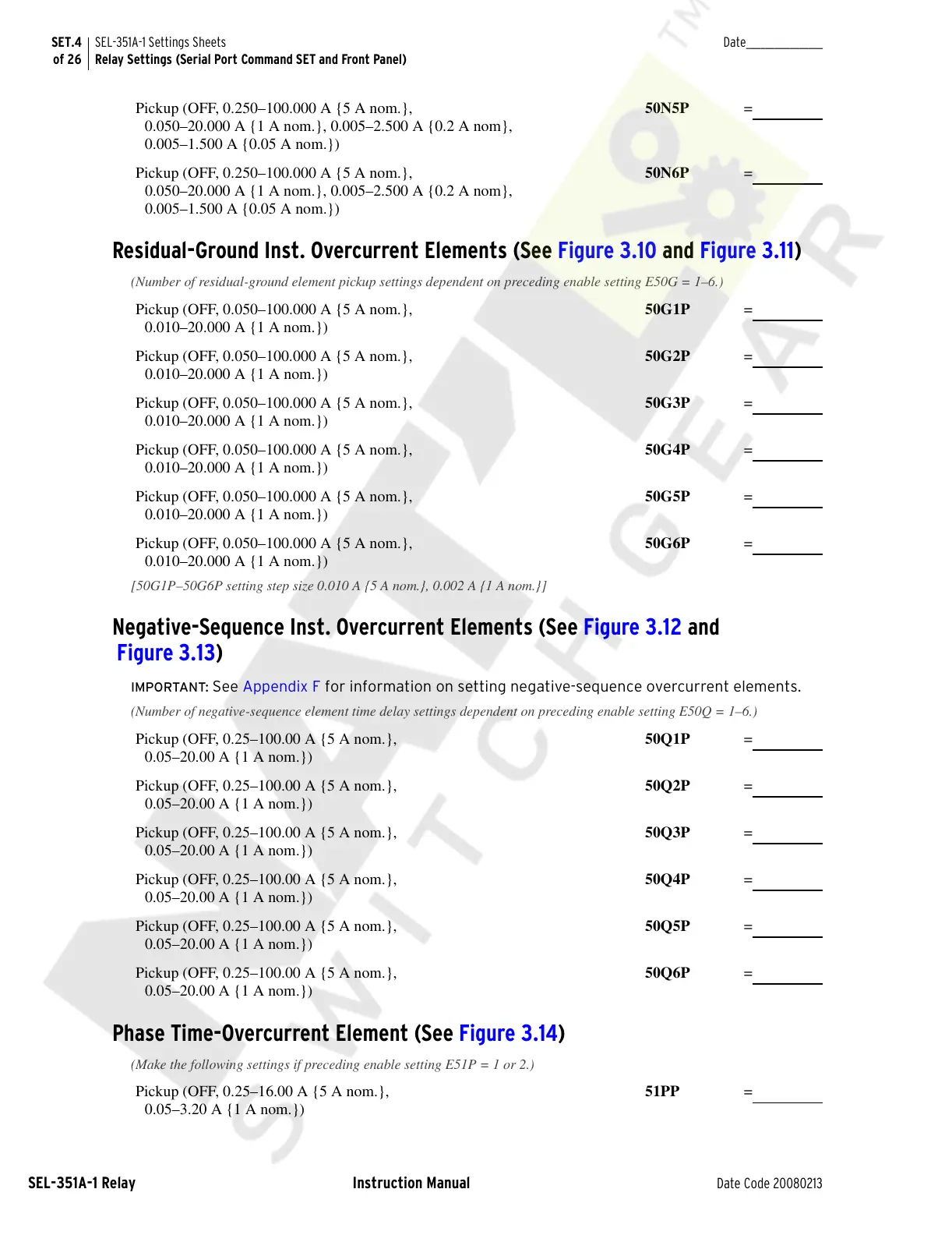 IMPORTANT: See Appendix F for information on setting negative-sequence overcurrent elements.
